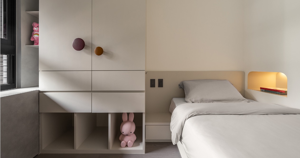 Bevels are integrated into the small details of life. From cabinet structures, sliding door handles, to even the reflection of cabinet lights, the bevel elements are smartly used to form the unique light and shadow effect and enrich visual varieties and fun.