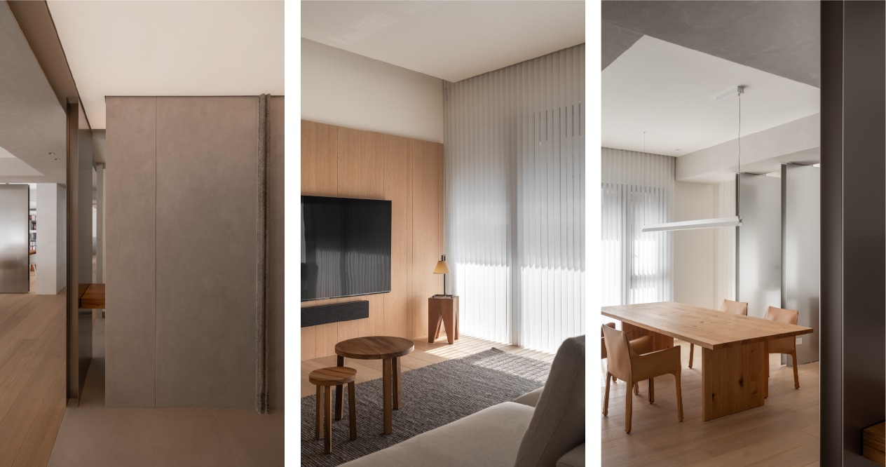 Building materials長型的基地條件下,左右兩側擁有良好的採光,保留原有的優勢,透過開放流暢的空間格局,讓光線自然流動,使整體氛圍顯得更加明亮輕盈。
