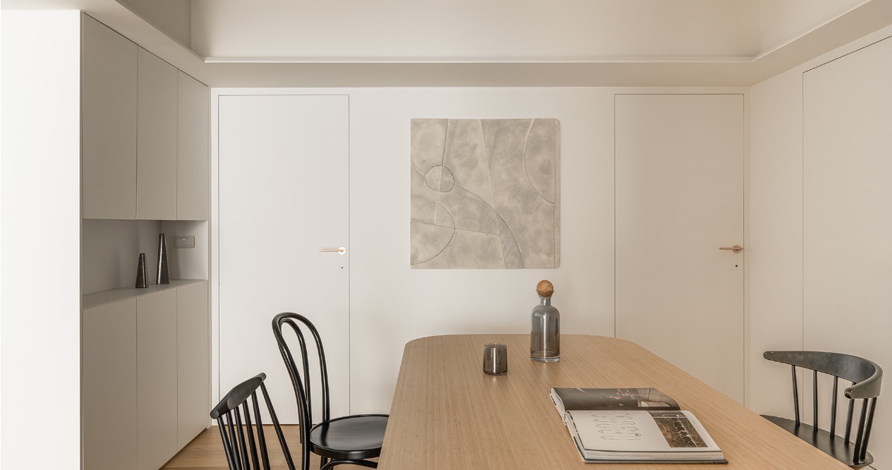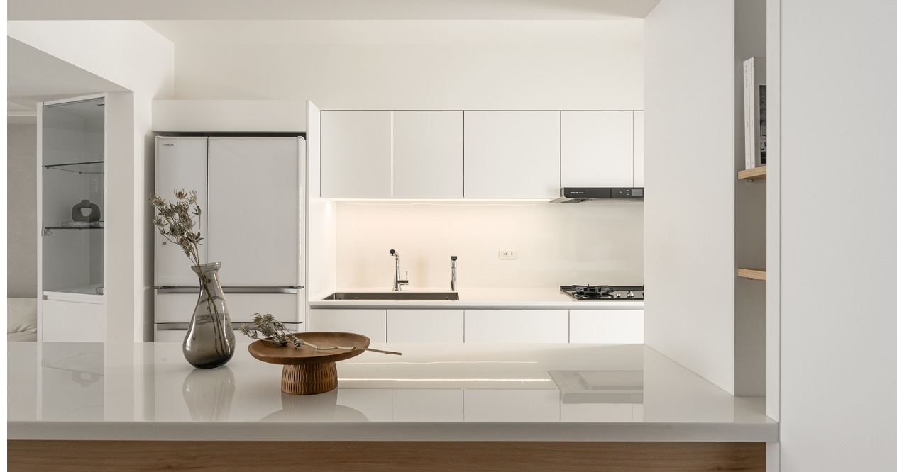 空間配置上,將廚房置於公共區域的核心位置,讓動線自然串連每一個角落。將備餐、用餐與親子互動自然串連,讓生活的每一刻都能彼此連結。寬敞的動線與通透的視野,讓空間保持流動感,也賦予孩子更自由的活動區域。