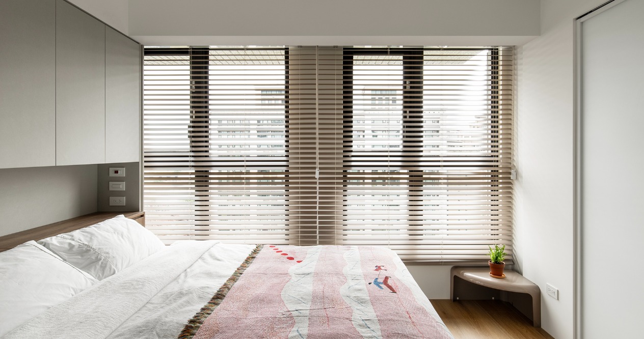 玄關以雙向的櫃體整合機能,一側作為鞋櫃,另一側則延伸為收納櫃體。滿足了軟裝所無法承載的機能需求,盡可能讓收納最大化同時維持空間的整潔。