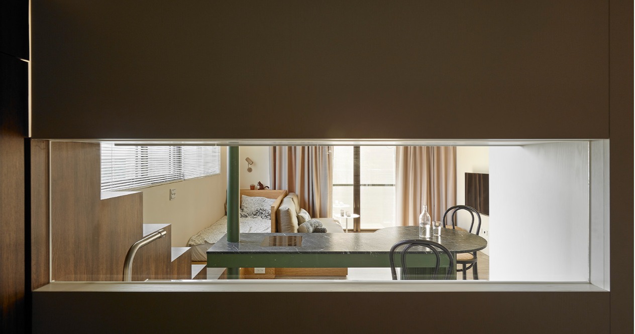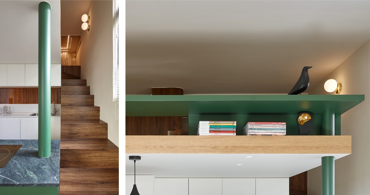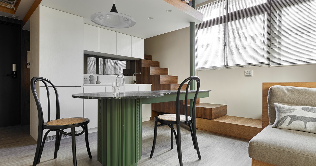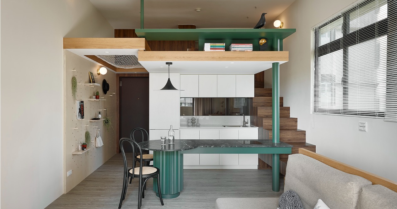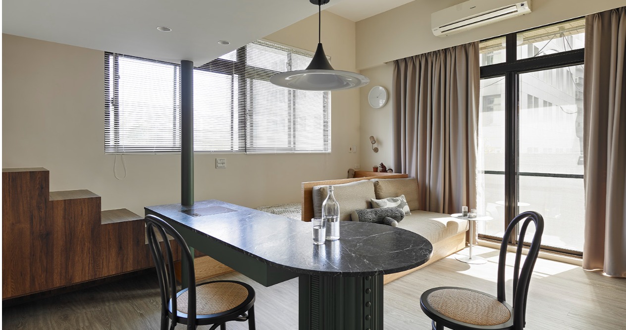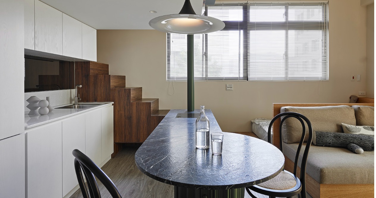 Building materials一般小空間的規劃裡我們會將既往的空間尺度重新思考,依居住者的需求安排,包括主動線與支線的寬度、天花高度和以占用的時間性決定面積大小,小空間若能掌控精準尺度便能夠爭取更多的有感差距,也因此我們將夾層放置在平面上最不常停留的位置,爭取空間的開闊。
