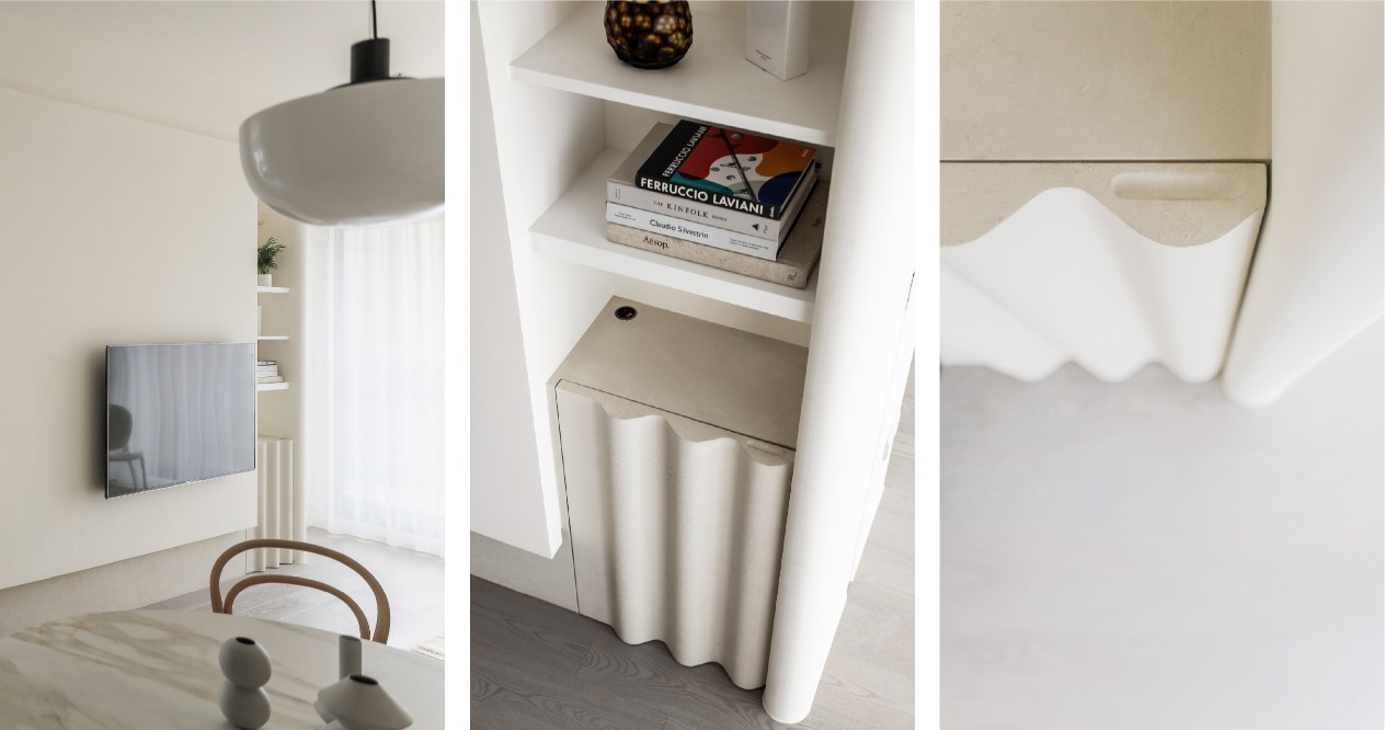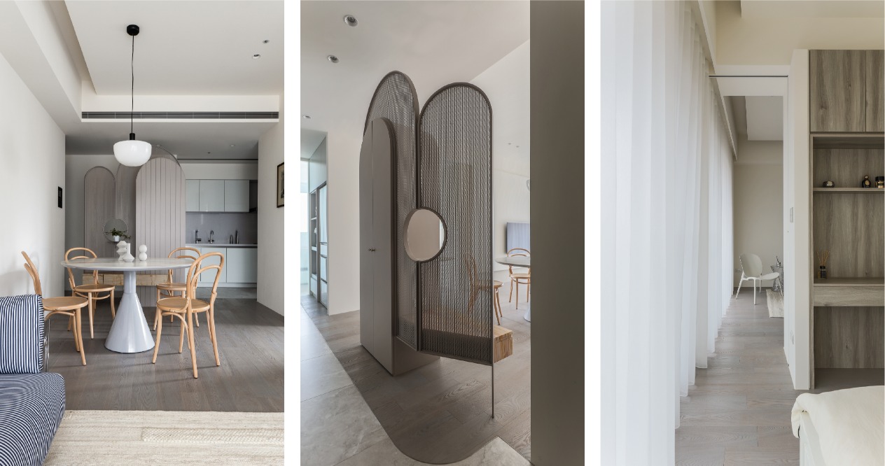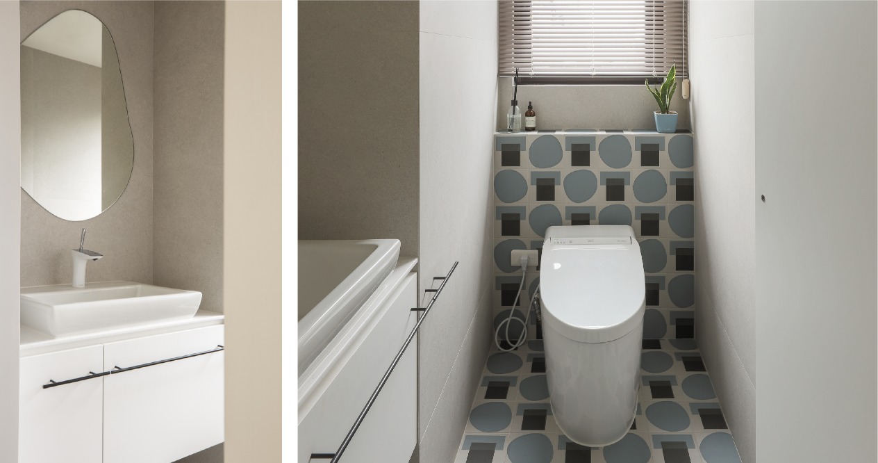 室內牆體融合了品味與機能,以和緩的導角、弧角取代剛硬的銳角,在提升安全性的同時,也能透過圓潤的視覺體感,創造溫馨的氛圍。重新打造的居住空間,最重視的就是居住者的喜好。因此我們為小主人的房間添加專屬色彩、在浴廁安排繽紛幾何圖樣的磁磚,在舒適之餘不忘用趣味強化人與家的情感,並在公共區域穿插清透感的點綴,以法式簡約風格佈置細節,期盼蘊藏其中的美好,都值得反覆回味。